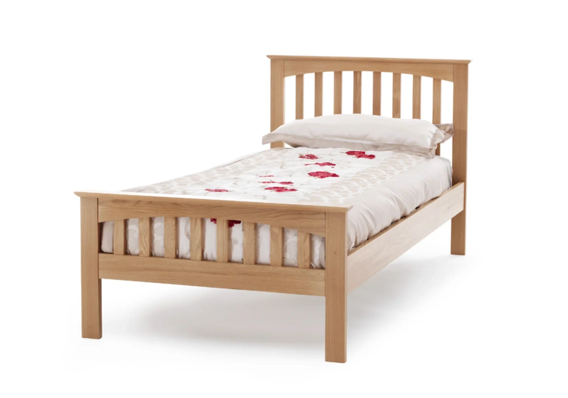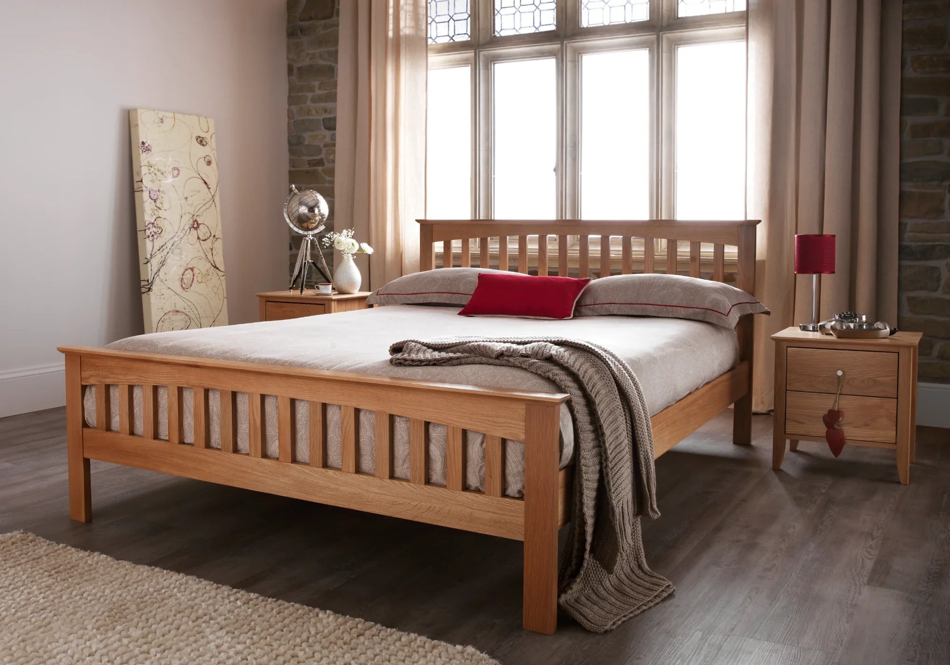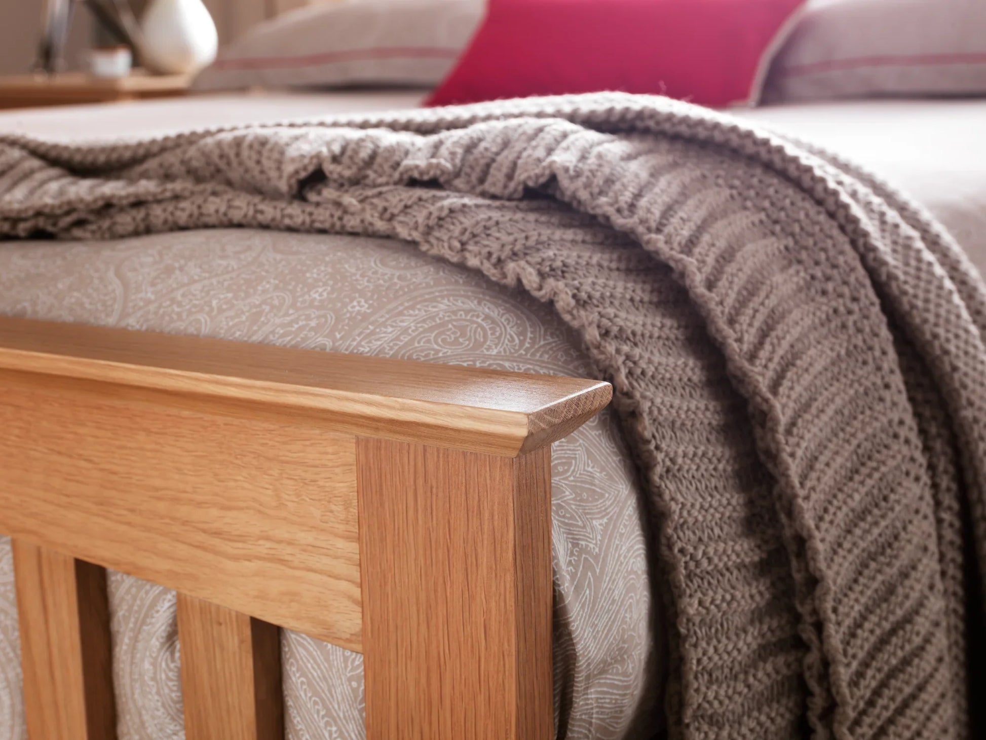 Introducing the Haven bed: a timeless piece crafted from durable solid oak that is built to withstand the test of time. Its slatted head and foot end, combined with a posture-sprung slatted base, provide unparalleled support and comfort. The Haven bed is available in various sizes, from single to super king, ensuring that every family member can indulge in the luxurious comfort it offers. Rest assured, the Haven bed guarantees a lifetime of tranquility and relaxation.