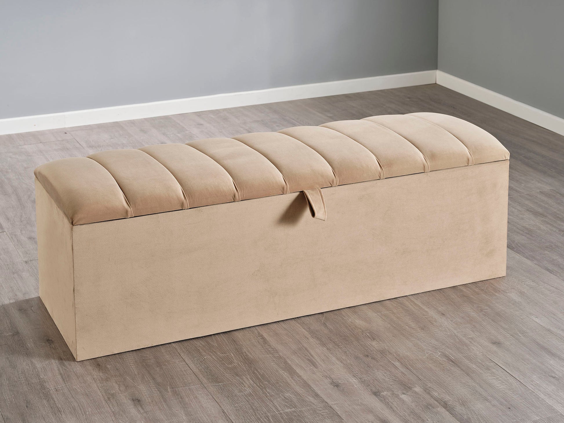 The Ottoman storage box is made up of a solid frame and base, with a Polyester cushion all covered in our luxurious and soft to touch, easy to clean fabrics. Included is a durable and easy to lift strap, metal hinges for smooth lift and drop down. The hinged lid allows you to quickly store and organise your items without having to lift the lid off.