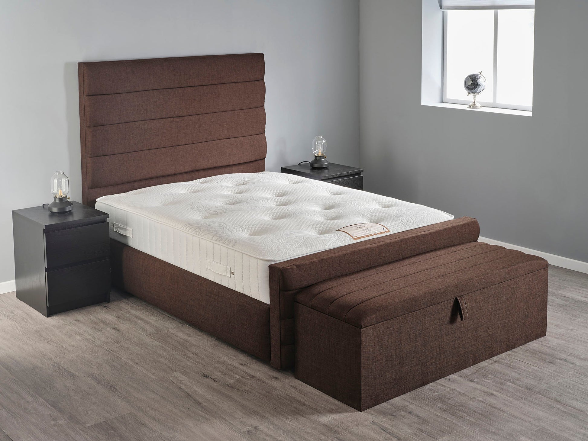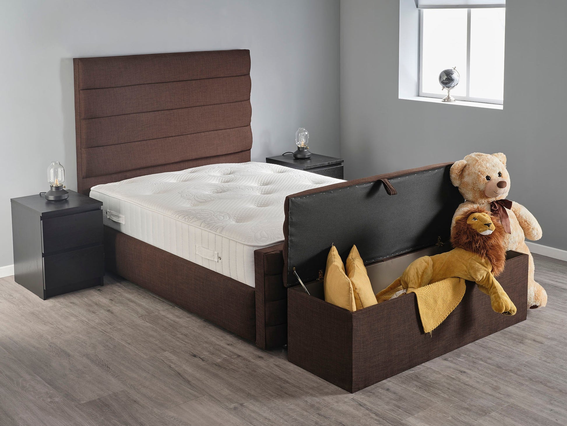 The ottoman storage boxes dimensions are – Height: 43cm, Depth: 45cm, Width – (90cm, 140cm, 152cm, 183cm) A range of sizes are available to cater to the size of your bed or room size.