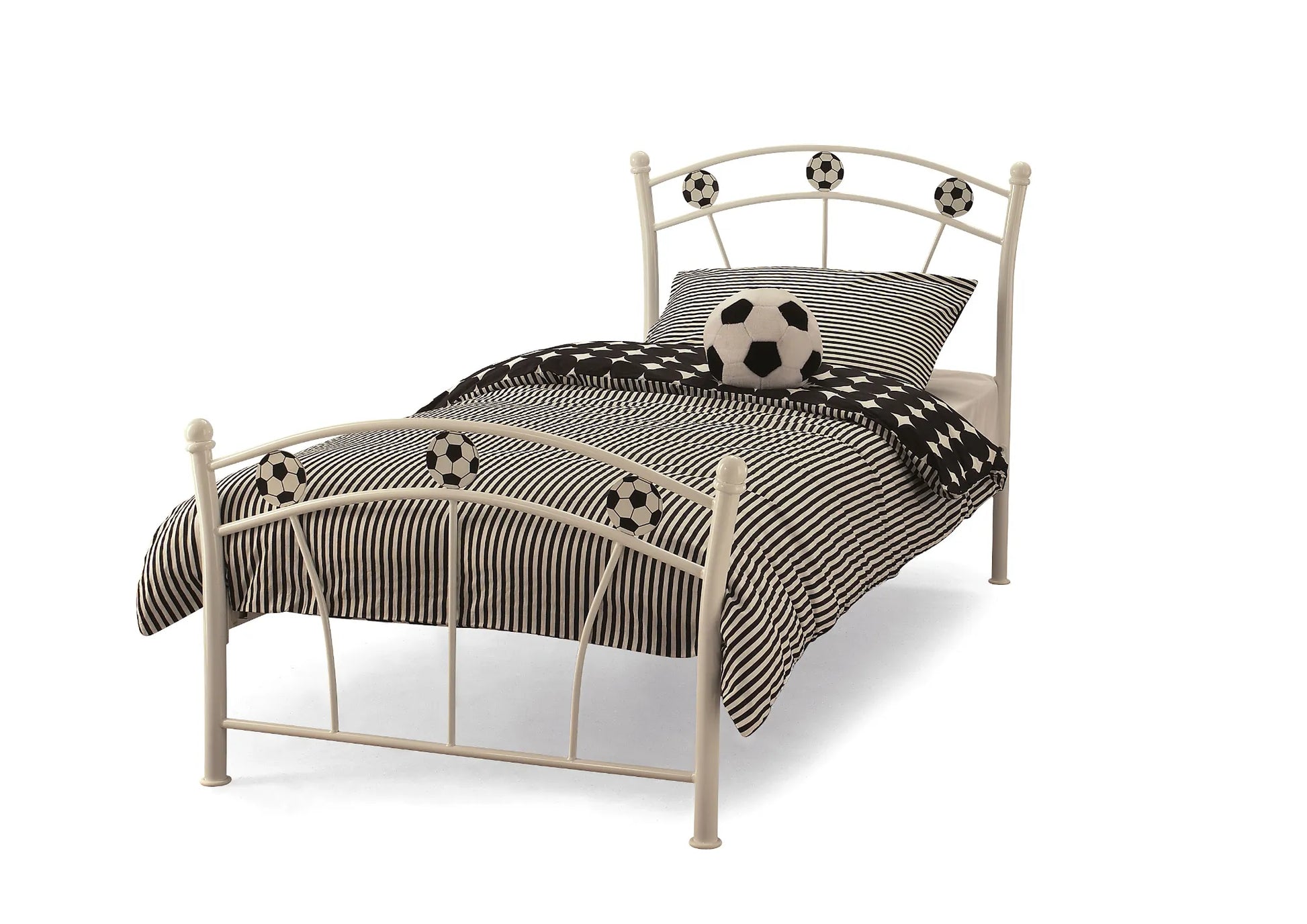 Which young football enthusiast wouldn't dream of having this fantastic bed in their room? There will be no doubt about whose room it is when friends and family encounter this enjoyable, football-inspired sleeping space. The bed is designed with white and black faux leather, perfectly capturing the essence of football. It's an absolute winner, scoring a 'back of the net' design!
