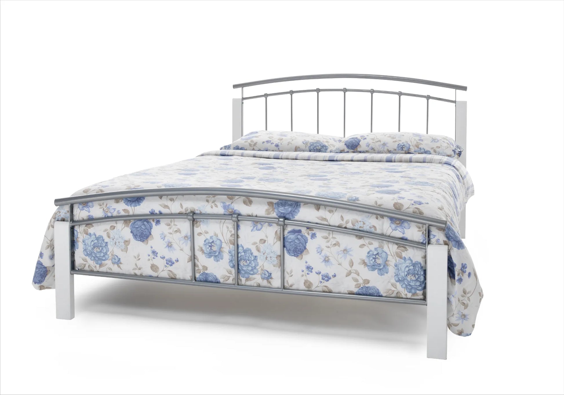 The design of this bed is widely loved for its successful blend of metal and wood, creating a striking visual impact. It comes in four different sizes, making it highly appealing, and even offers a guest bed option for extra sleeping space when needed. The bed's four corner posts are available in Silver and White, complementing the silver or black metal finish flawlessly.