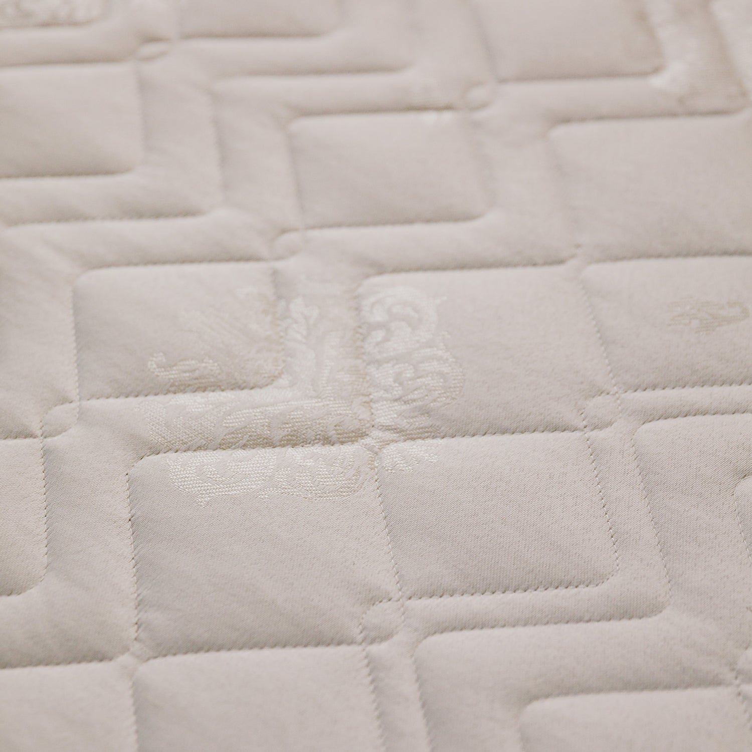 Finished in a luxurious damask fabric cover with a deep quilted finish, air ventilator borders to enable the mattress to breathe and flag stitched handles for easy movability.