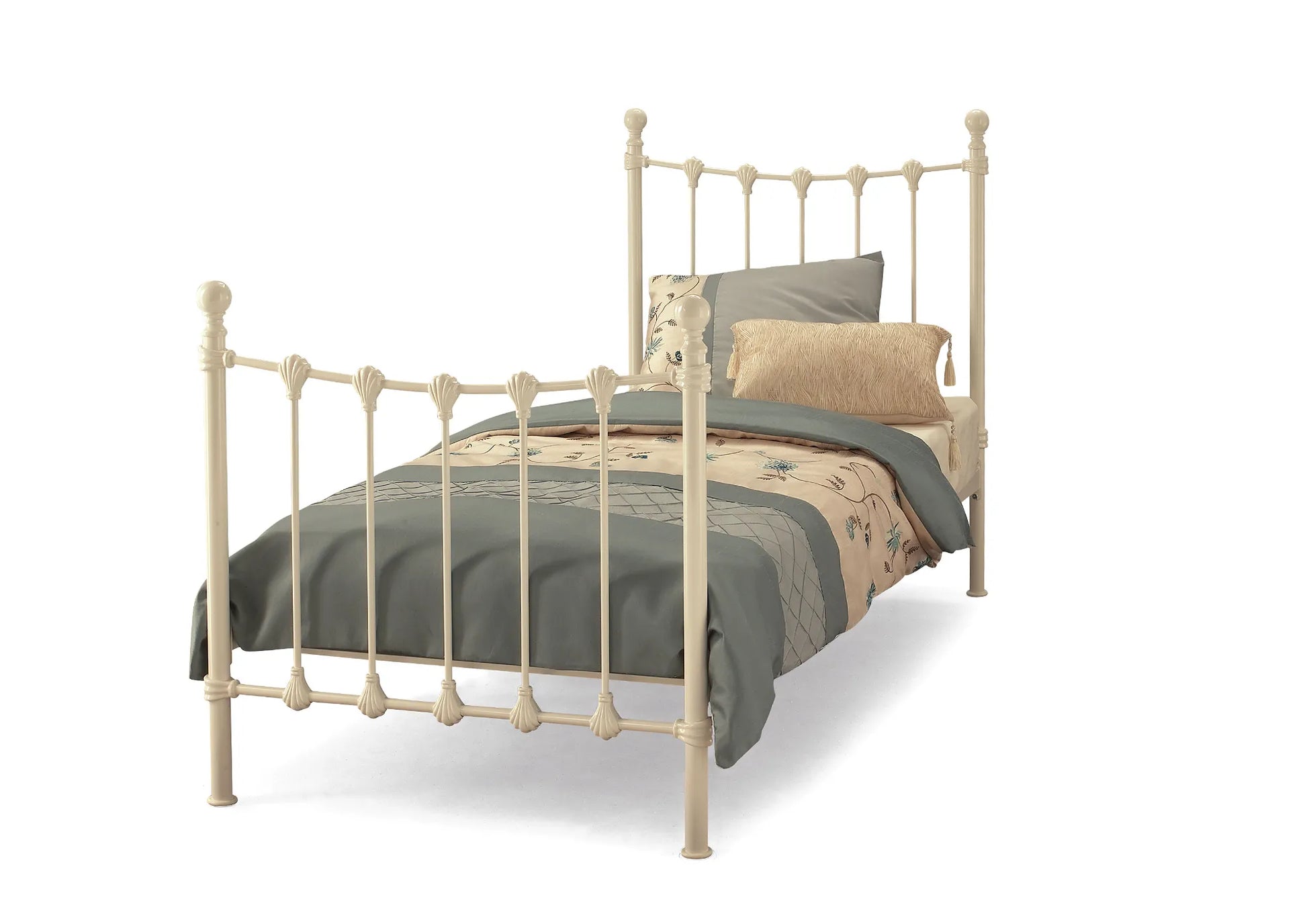 The Tranquility bed exudes timeless elegance and adds a touch of sophistication to your bedroom. Crafted from premium-grade metal, this bed is exceptionally sturdy and built to withstand the test of time. Its remarkable design is complemented by a superior sprung slatted base, offering optimal comfort and support while you indulge in the luxurious experience it provides. The Tranquility bed is available in a range of sizes, from single to super king, and you can choose between two exquisite colors: ivory and black.