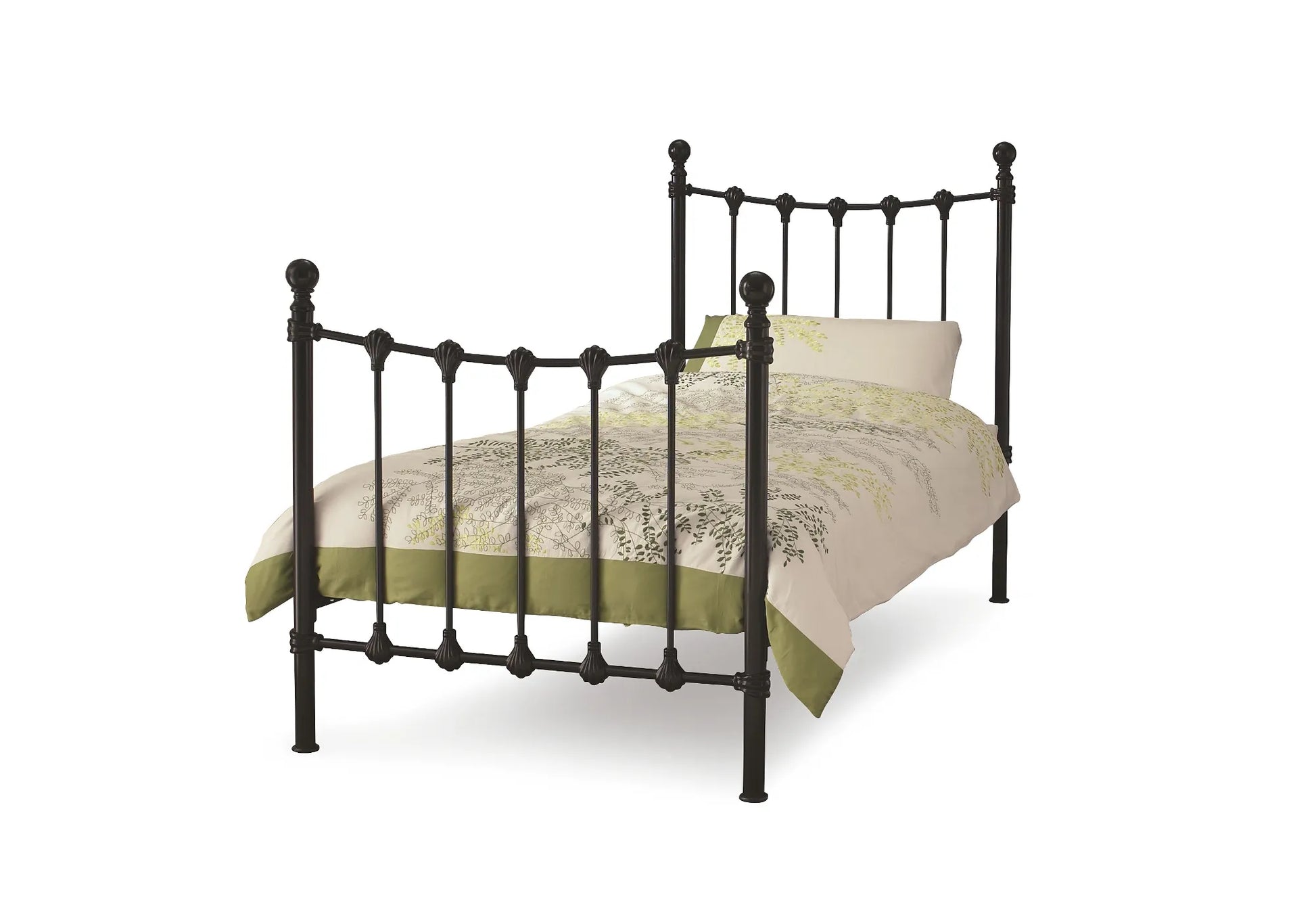 The Tranquility bed exudes timeless elegance and adds a touch of sophistication to your bedroom. Crafted from premium-grade metal, this bed is exceptionally sturdy and built to withstand the test of time. Its remarkable design is complemented by a superior sprung slatted base, offering optimal comfort and support while you indulge in the luxurious experience it provides. The Tranquility bed is available in a range of sizes, from single to super king, and you can choose between two exquisite colors: ivory and black.