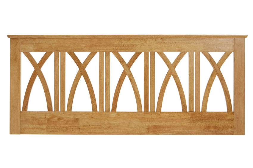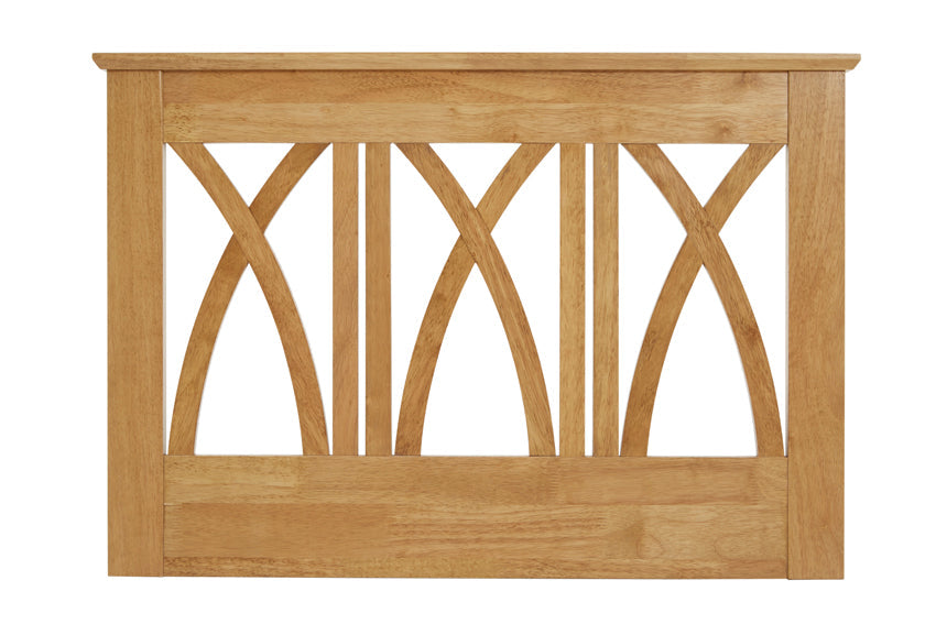 The Victoria headboard has an intricate design with clean lines and elegant curves, especially in a Honey Oak finish. It serves as a focal point and a relaxing place. Available in five sizes with a sprung slatted base. Made from sustainable Hevea Wood with remarkable grain detail.